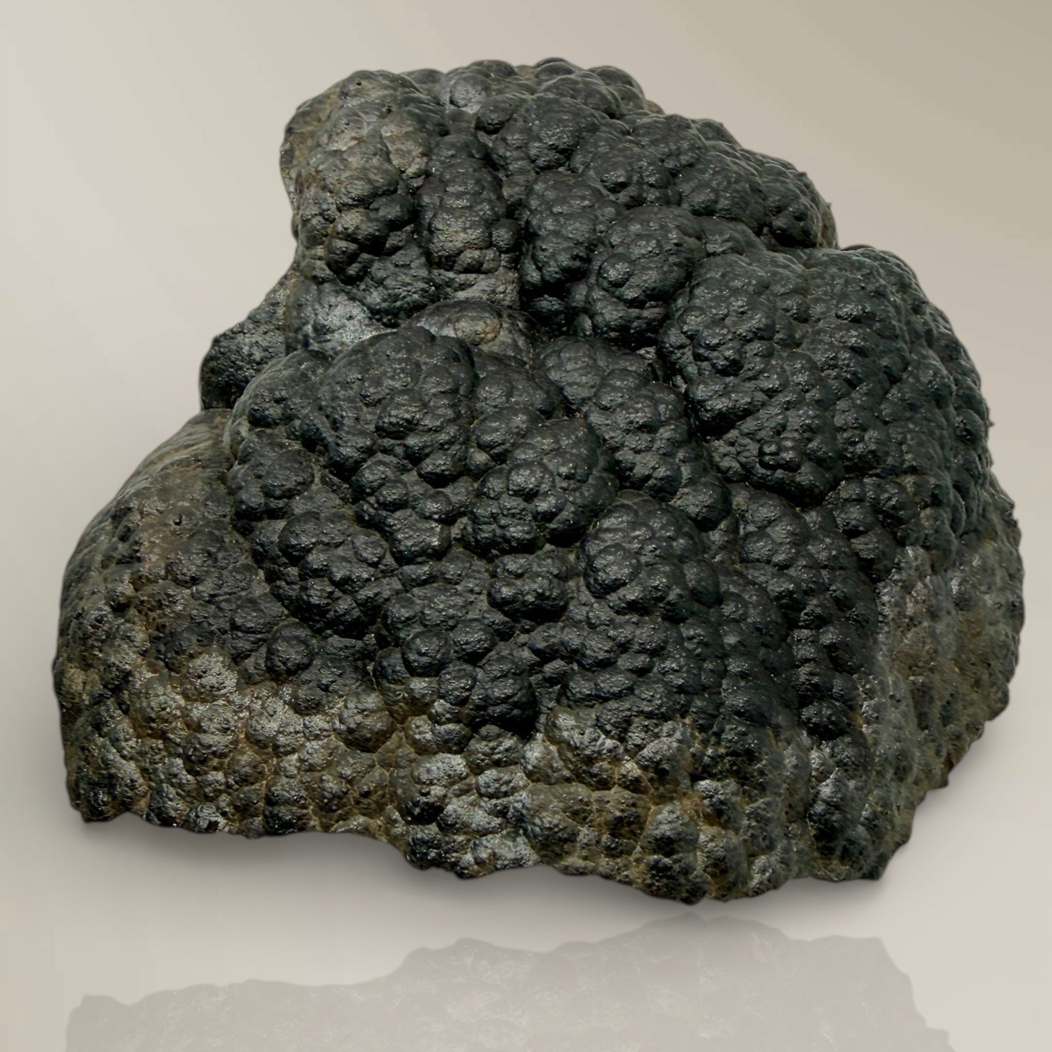 Description: A one-of-a-kind, jet black, lustrous botryoidal Goethite specimen from the famous Steep Rock Iron Mine Errington Pit. This specimen has botryoidal crystals radiating from a central point. Specimens like this are rare and will be impossible to obtain except from old collections as the Errington pit is currently flooded with all exposures under water. There is no damage and the specimen ‘shines’ – a true classic.